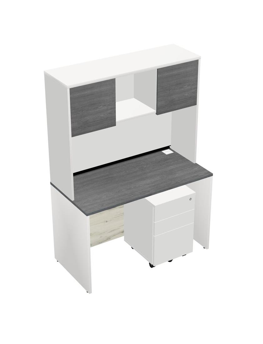 Bureau Rectangulaire Gris Avec Tiroirs Mobiles En Bois Blanc Et Bahut Blanc