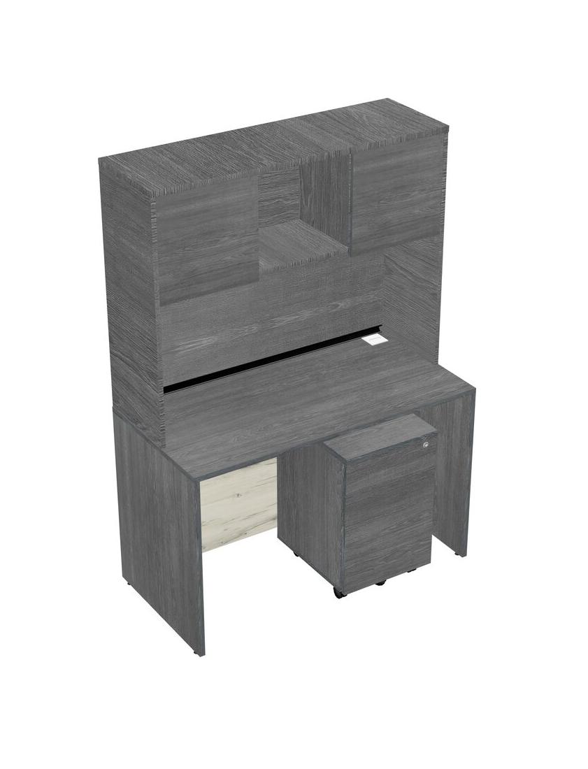 Bureau Rectangulaire Gris Avec Tiroirs Mobiles En Bois Gris Et Clapier Gris