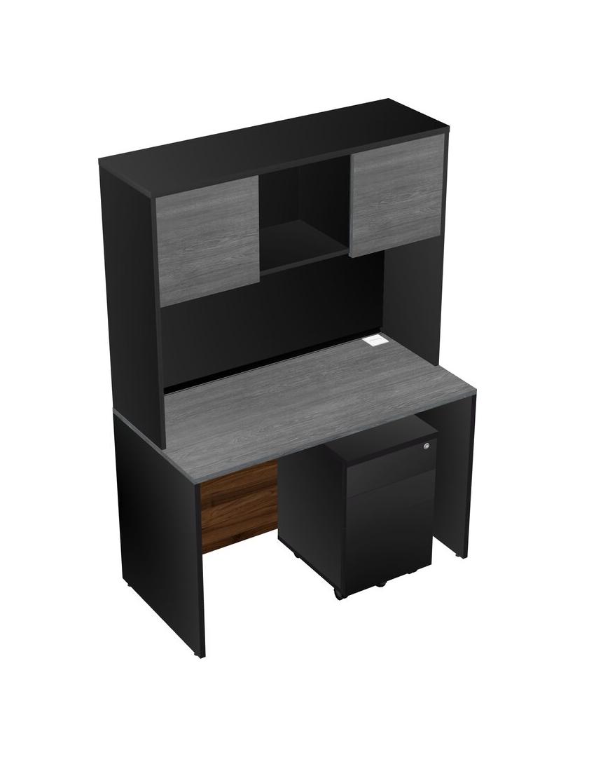 Bureau Rectangulaire Gris Avec Tiroirs Mobiles En Bois Noir Et Bahut Noir