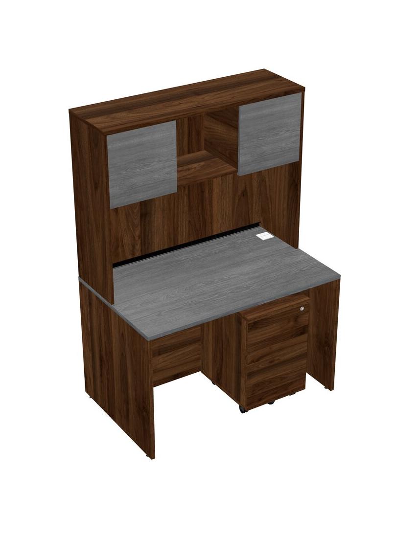 Bureau Rectangulaire Gris Avec Tiroirs Mobiles En Bois De Noyer Columbia Et Huche En Noyer Columbia