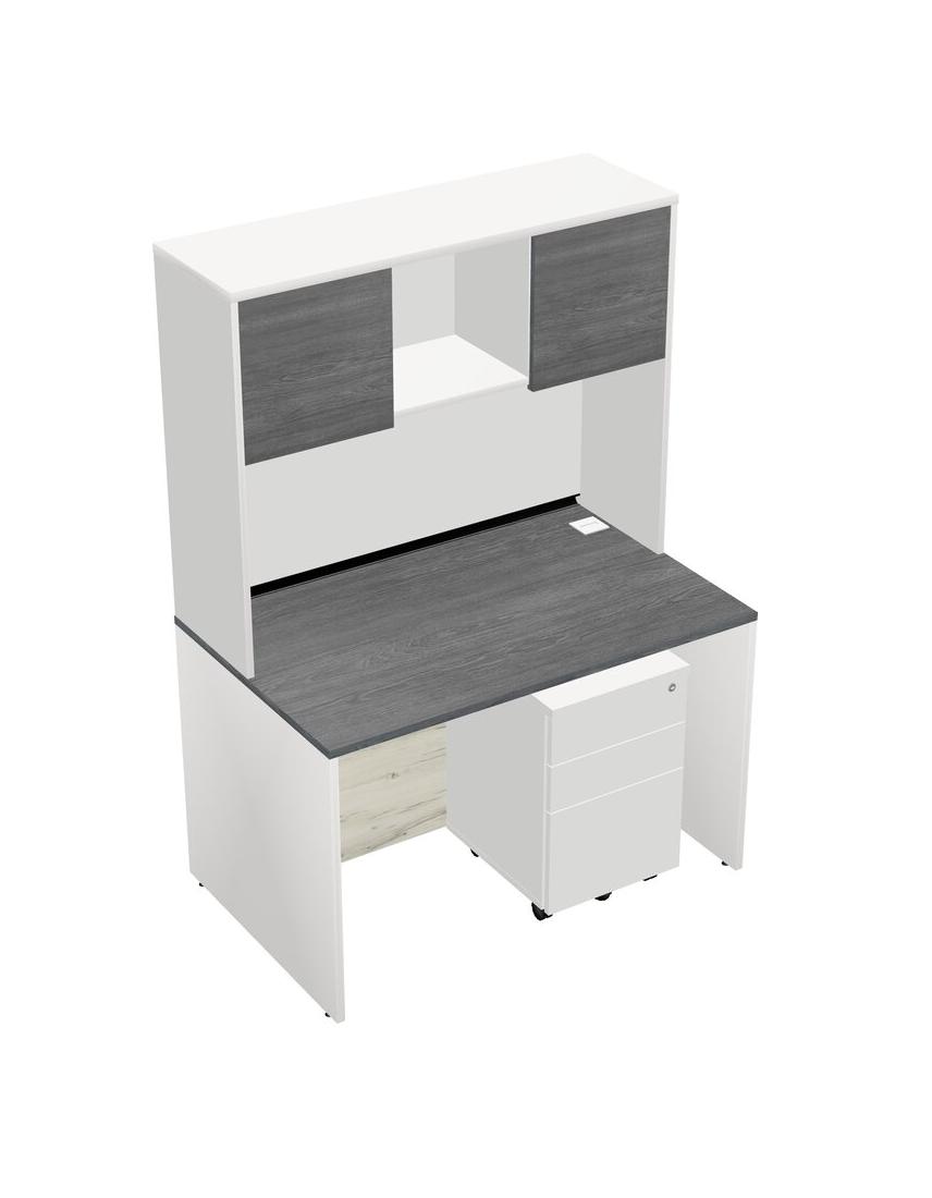 Bureau Rectangulaire Gris Avec Tiroirs Mobiles En Bois Blanc Et Bahut Blanc