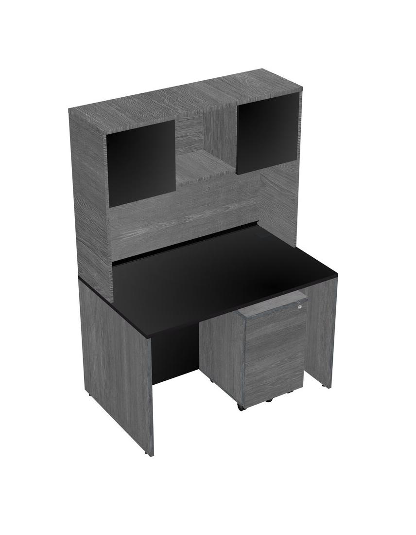 Bureau Rectangulaire Noir Avec Tiroirs Mobiles En Bois Gris Et Clapier Gris
