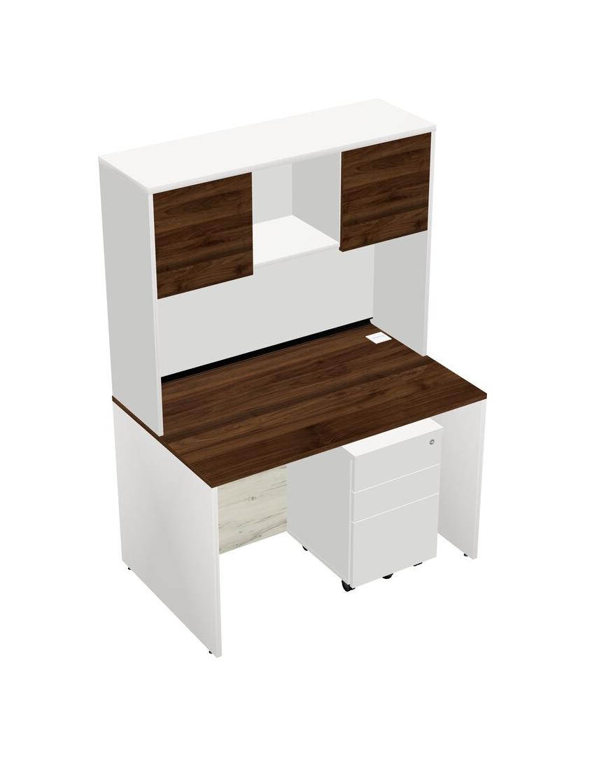 Bureau Rectangulaire En Noyer Columbia Avec Tiroirs Mobiles En Bois Blanc Et Bahut Blanc