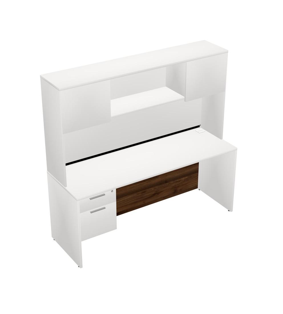 White Rectangular Office Desk Plus White Hanging Drawers And White Hutch