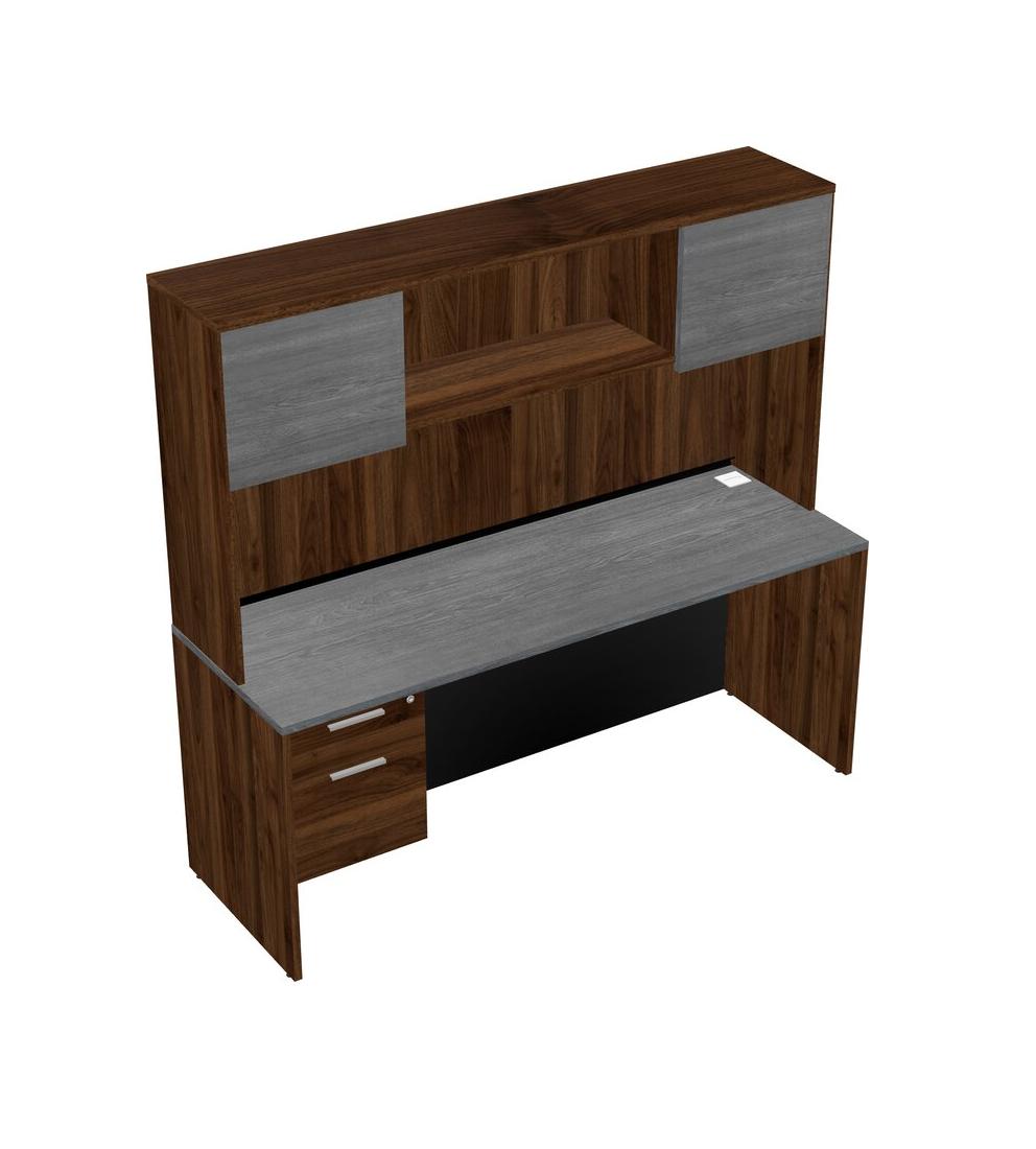 Bureau Rectangulaire Gris Avec Tiroirs Suspendus En Noyer Columbia Et Huche En Noyer Columbia