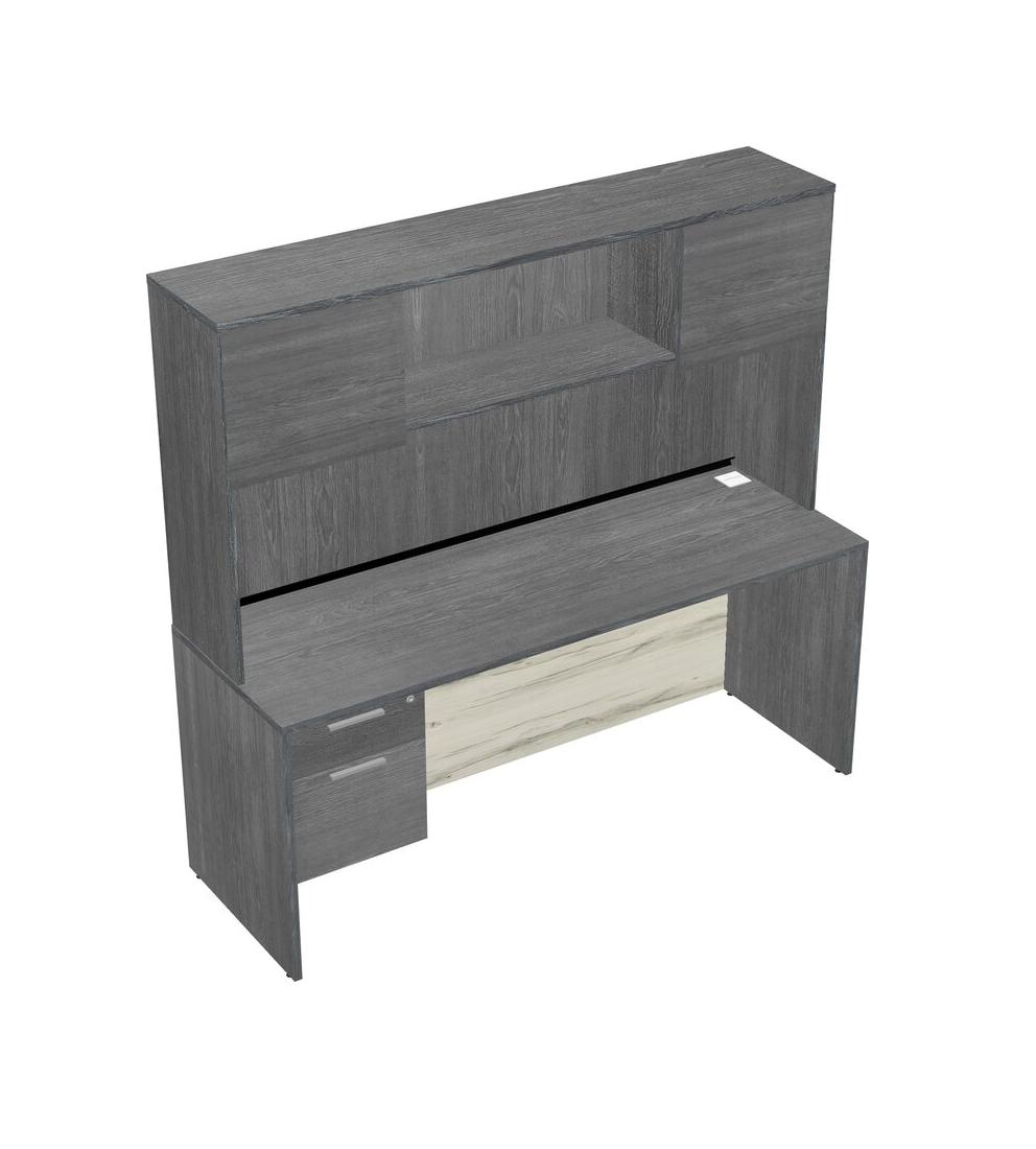 Bureau Rectangulaire Gris Avec Tiroirs Suspendus Gris Et Bahut Gris