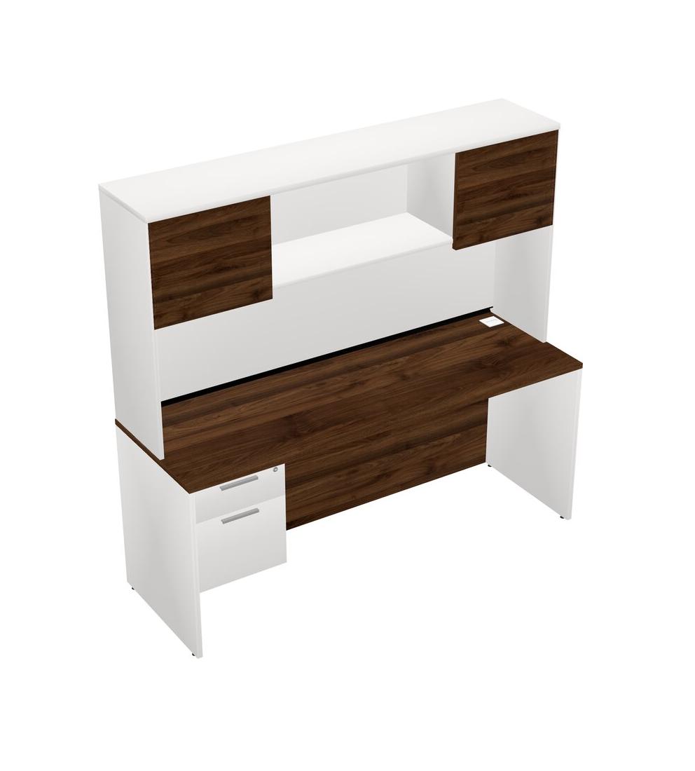 Bureau Rectangulaire En Noyer Columbia Avec Tiroirs Suspendus Blancs Et Bahut Blanc