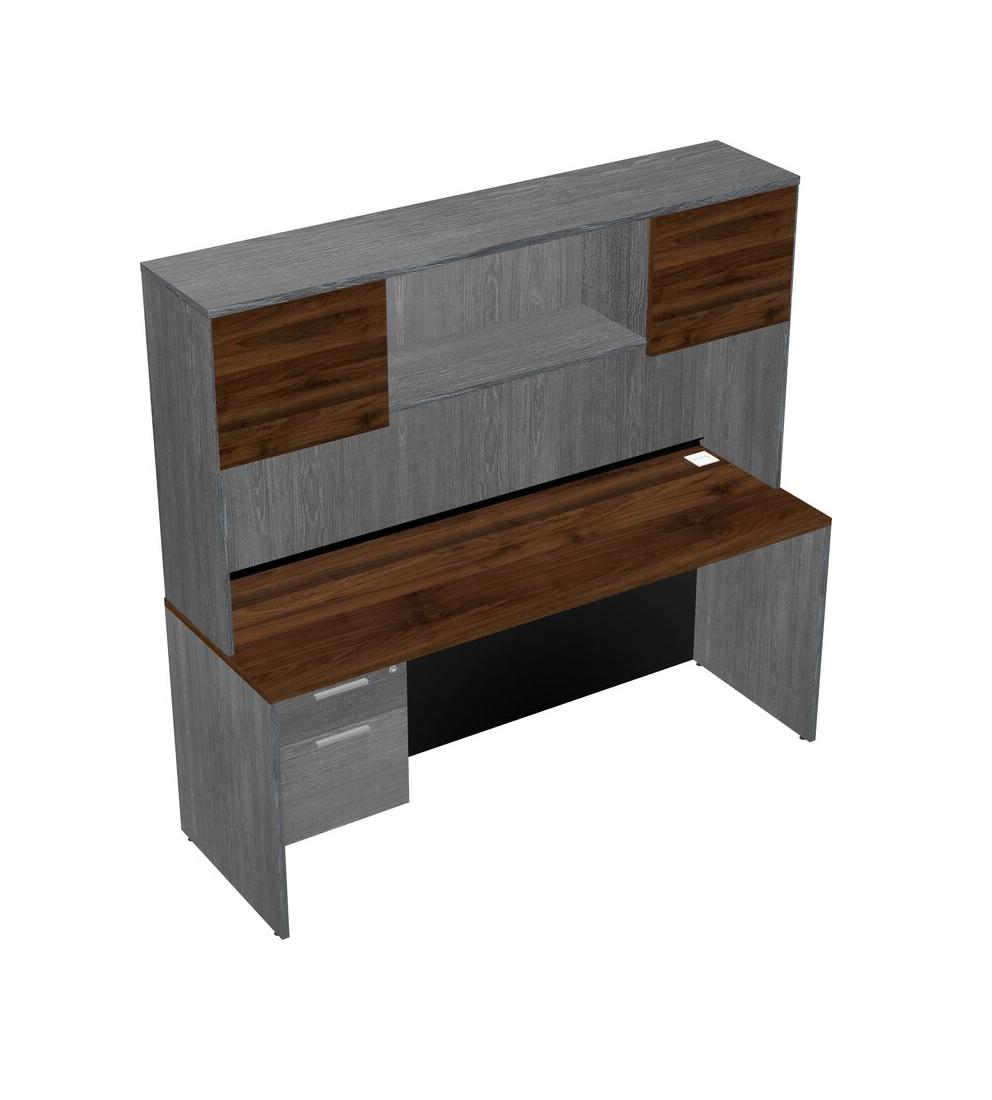 Bureau Rectangulaire En Noyer Columbia Avec Tiroirs Suspendus Gris Et Huche Grise