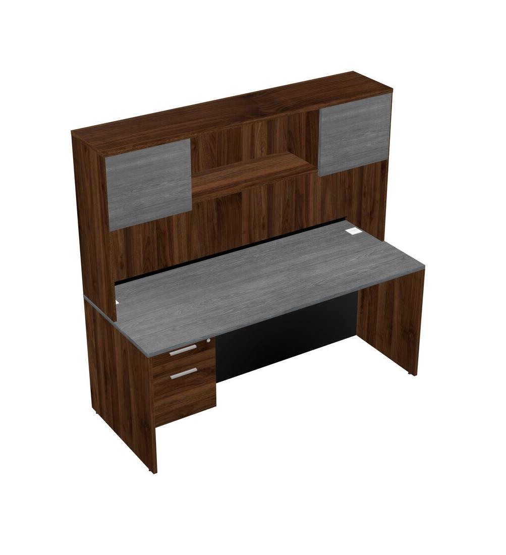 Bureau Rectangulaire Gris Avec Tiroirs Suspendus En Noyer Columbia Et Huche En Noyer Columbia