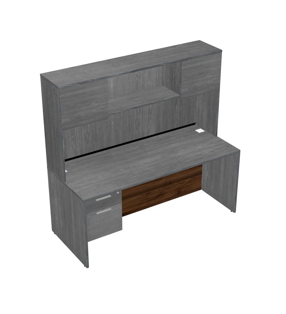 Bureau Rectangulaire Gris Avec Tiroirs Suspendus Gris Et Bahut Gris