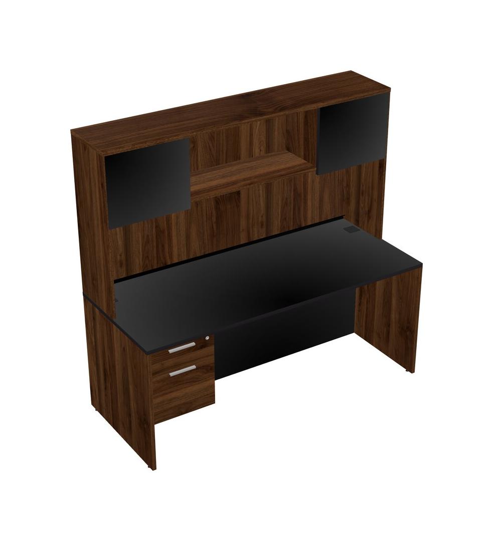 Black Rectangular Office Desk Plus Columbia Walnut Hanging Drawers And Columbia Walnut Hutch
