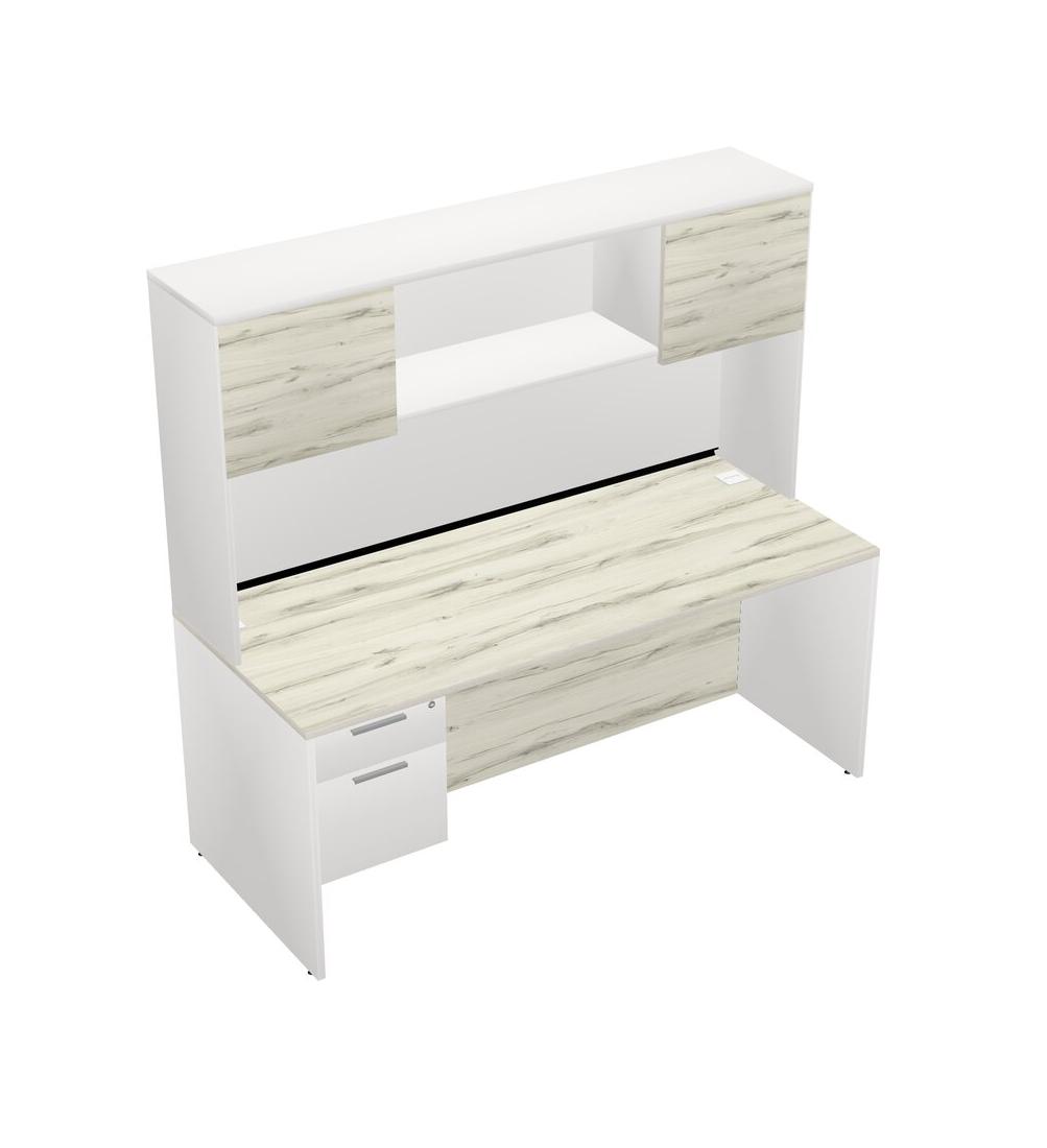 Bureau Rectangulaire Heinne Holz Avec Tiroirs Suspendus Blancs Et Bahut Blanc