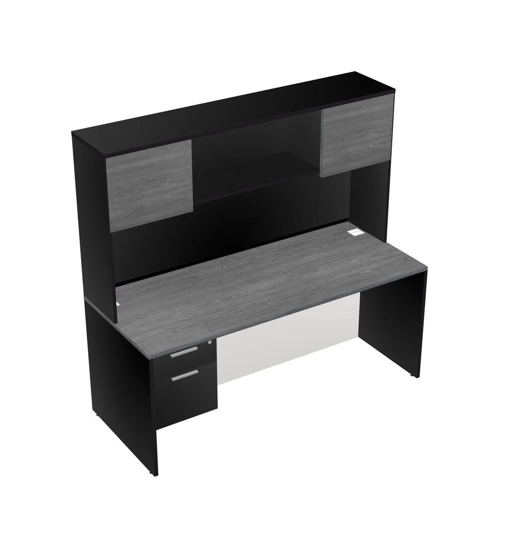 Bureau Rectangulaire Gris Avec Tiroirs Suspendus Noirs Et Bahut Noir