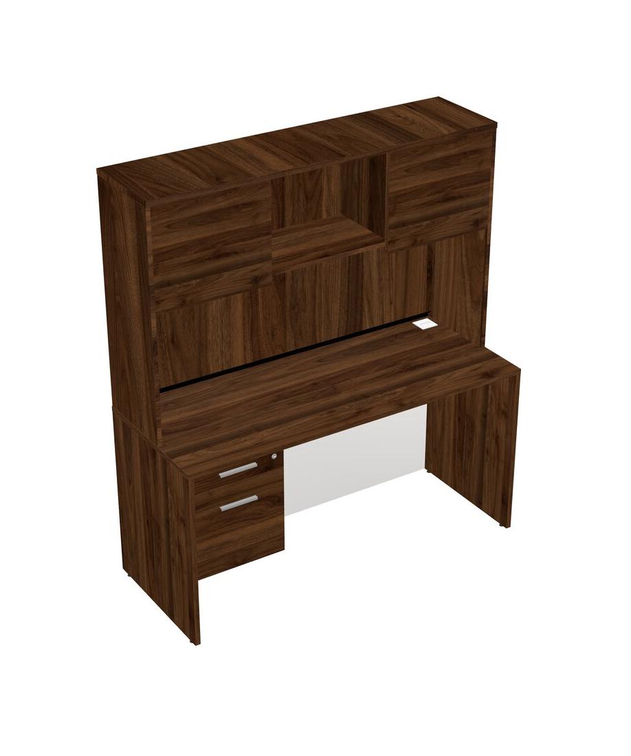 Bureau Rectangulaire En Noyer Columbia, Tiroirs Suspendus En Noyer Columbia Et Huche En Noyer Columbia