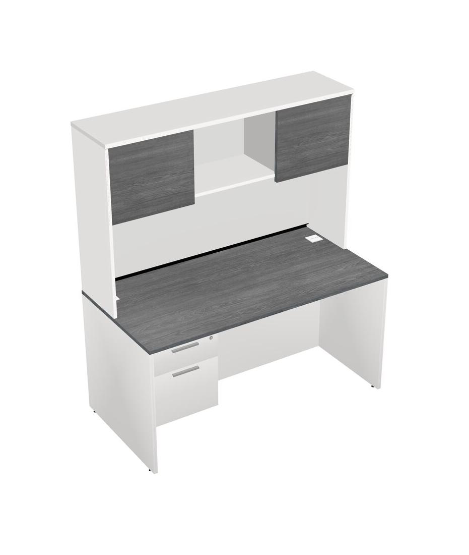 Bureau Rectangulaire Gris Avec Tiroirs Suspendus Blancs Et Bahut Blanc