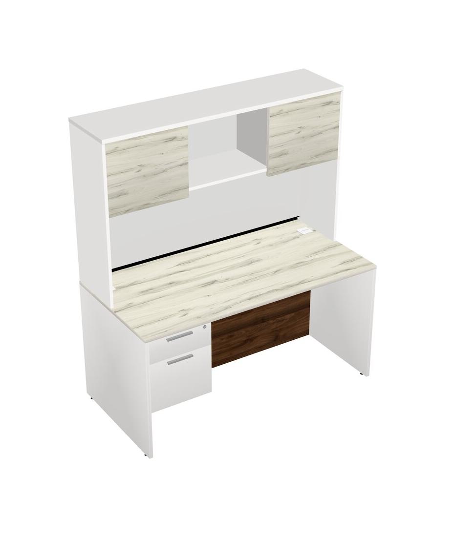 Bureau Rectangulaire Heinne Holz Avec Tiroirs Suspendus Blancs Et Bahut Blanc
