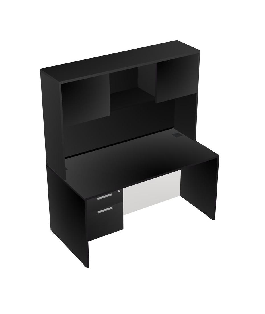 Bureau Rectangulaire Noir Avec Tiroirs Suspendus Noirs Et Bahut Noir
