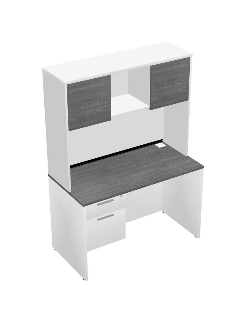 Bureau Rectangulaire Gris Avec Tiroirs Suspendus Blancs Et Bahut Blanc
