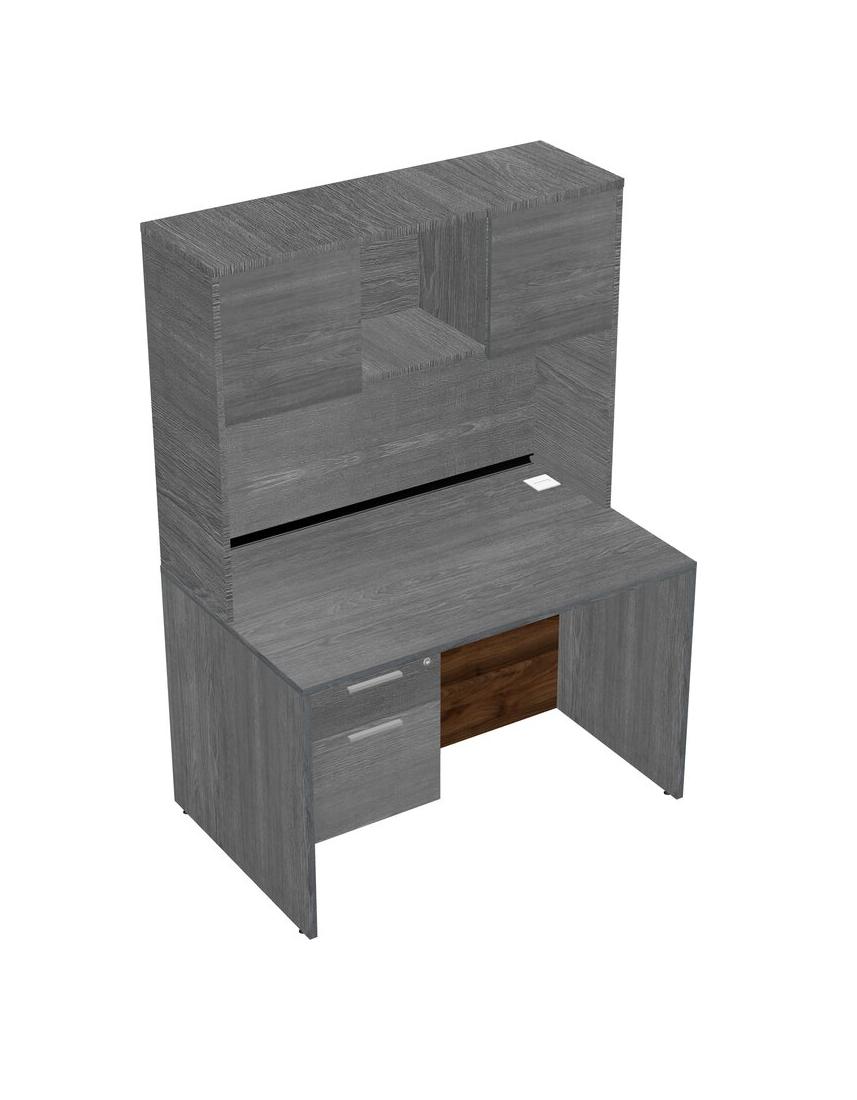 Bureau Rectangulaire Gris Avec Tiroirs Suspendus Gris Et Bahut Gris
