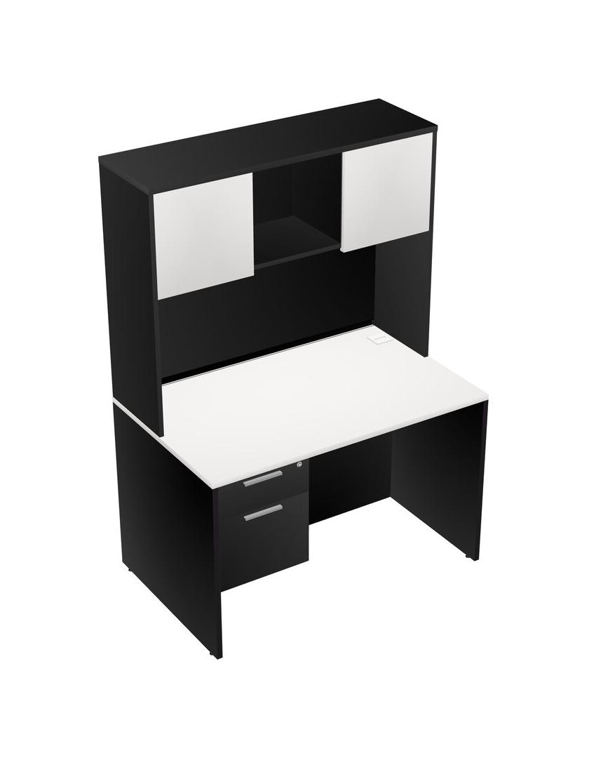 Bureau Rectangulaire Blanc Avec Tiroirs Suspendus Noirs Et Bahut Noir