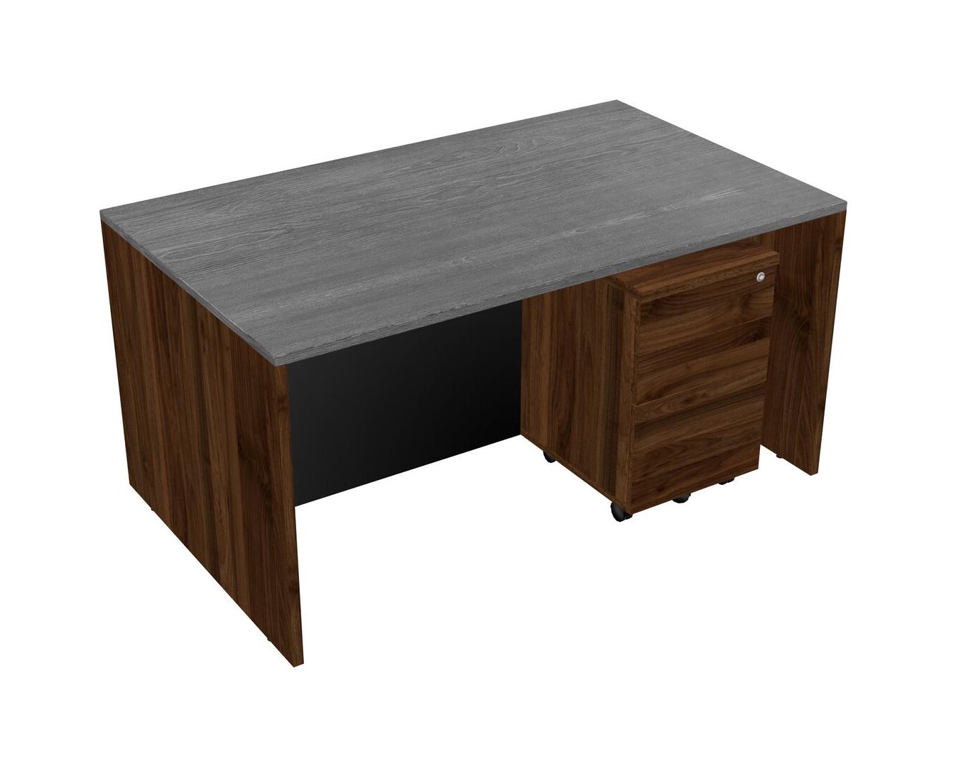 Bureau Rectangulaire Gris Avec Tiroirs Mobiles En Bois De Noyer Columbia