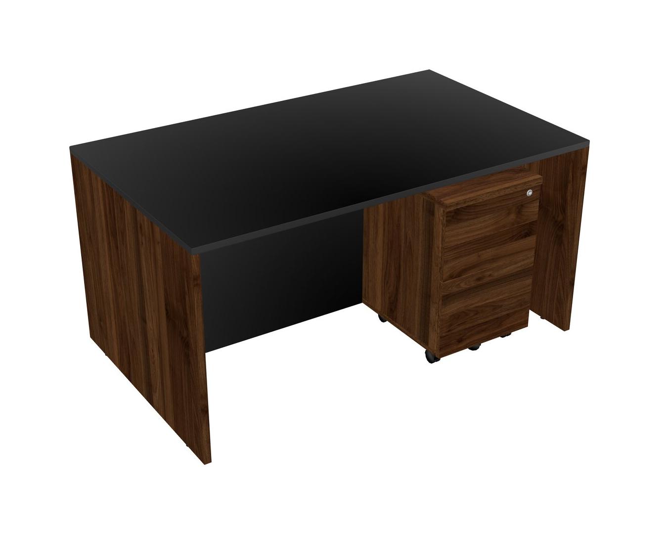 Bureau Rectangulaire Noir Avec Tiroirs Mobiles En Bois De Noyer Columbia