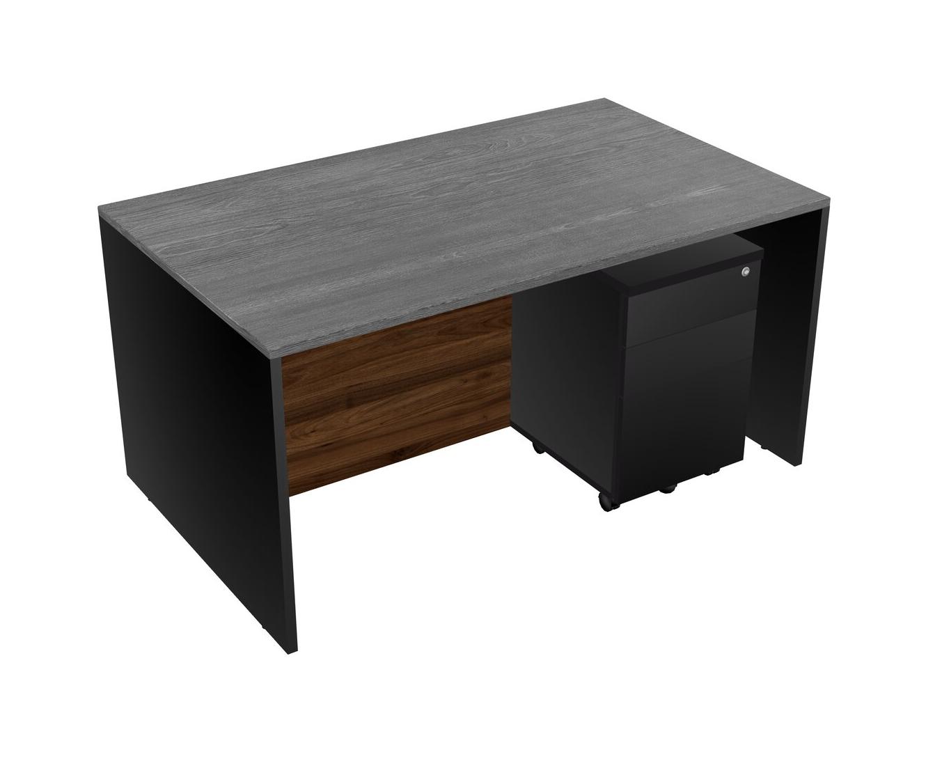 Bureau Rectangulaire Gris Avec Tiroirs Mobiles En Bois Noir