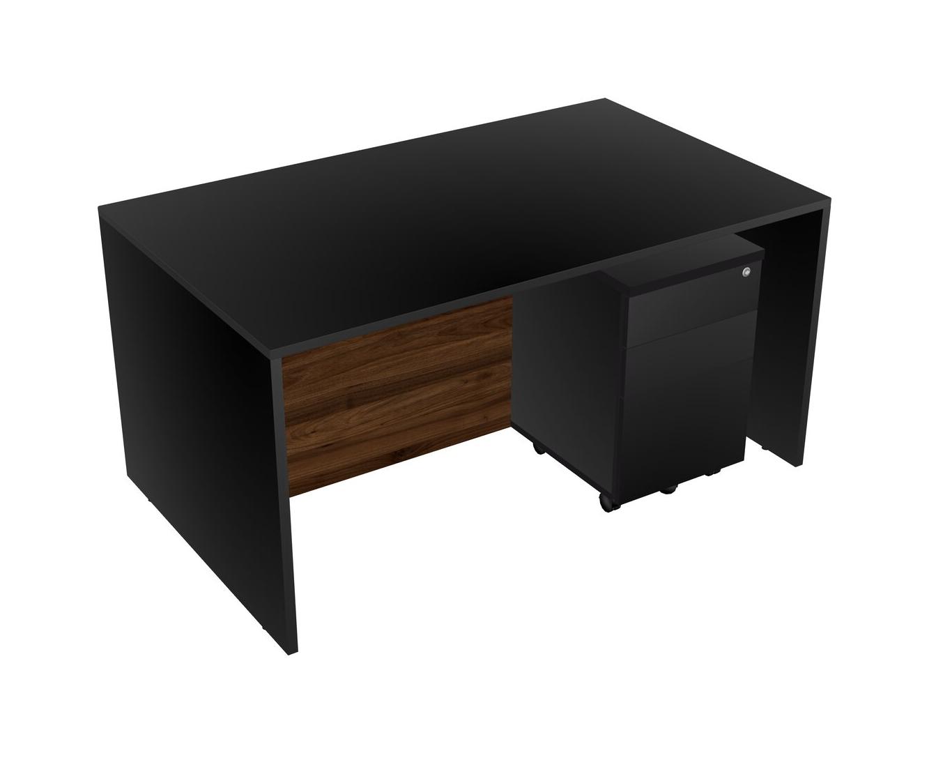 Bureau Rectangulaire Noir Avec Tiroirs Mobiles En Bois Noir
