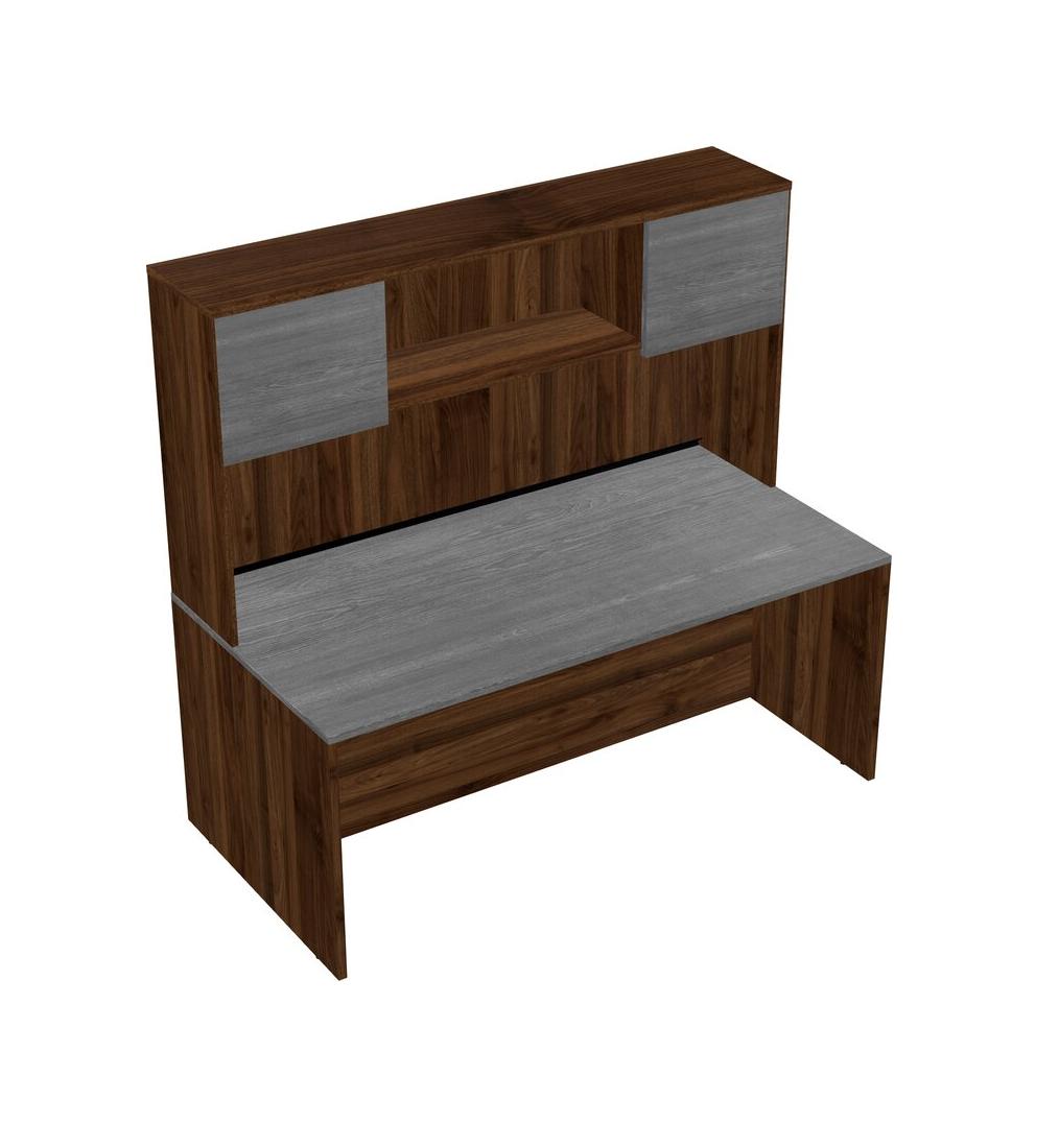 Grey Rectangular Office Desk And Columbia Walnut Hutch