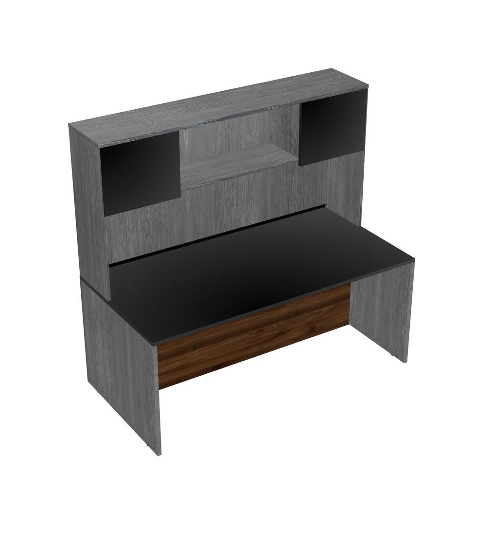 Black Rectangular Office Desk And Grey Hutch