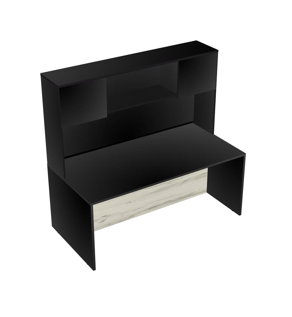 Black Rectangular Office Desk And Black Hutch