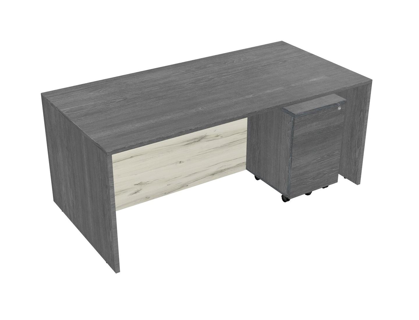 Bureau Rectangulaire Gris Avec Tiroirs Mobiles En Bois Gris