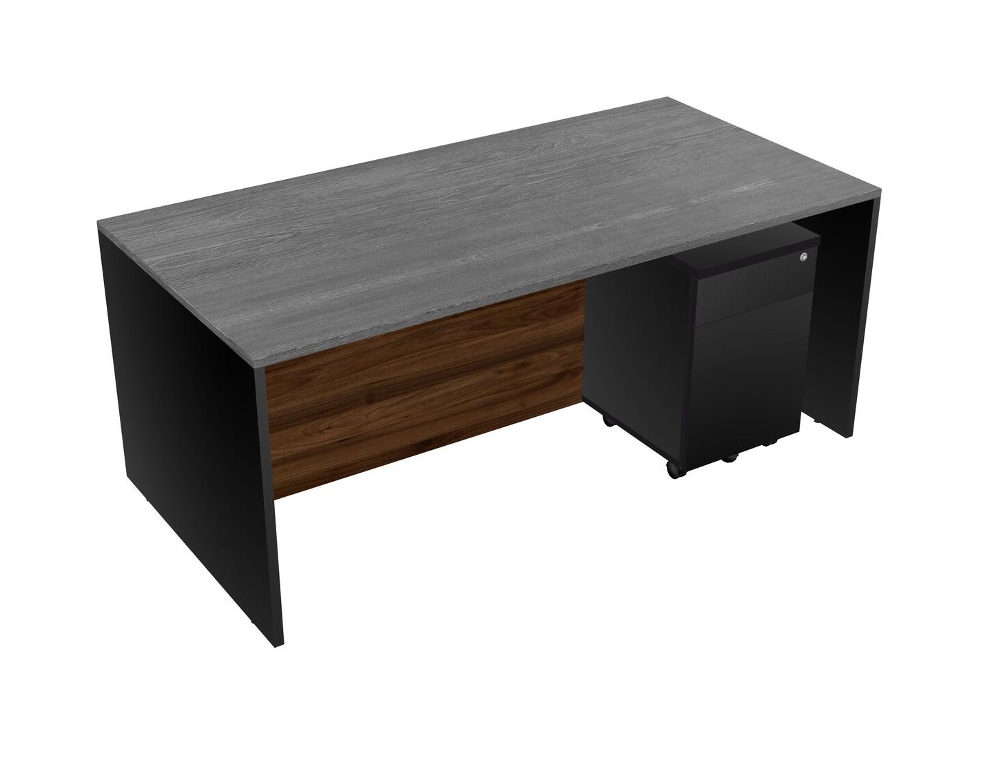 Bureau Rectangulaire Gris Avec Tiroirs Mobiles En Bois Noir