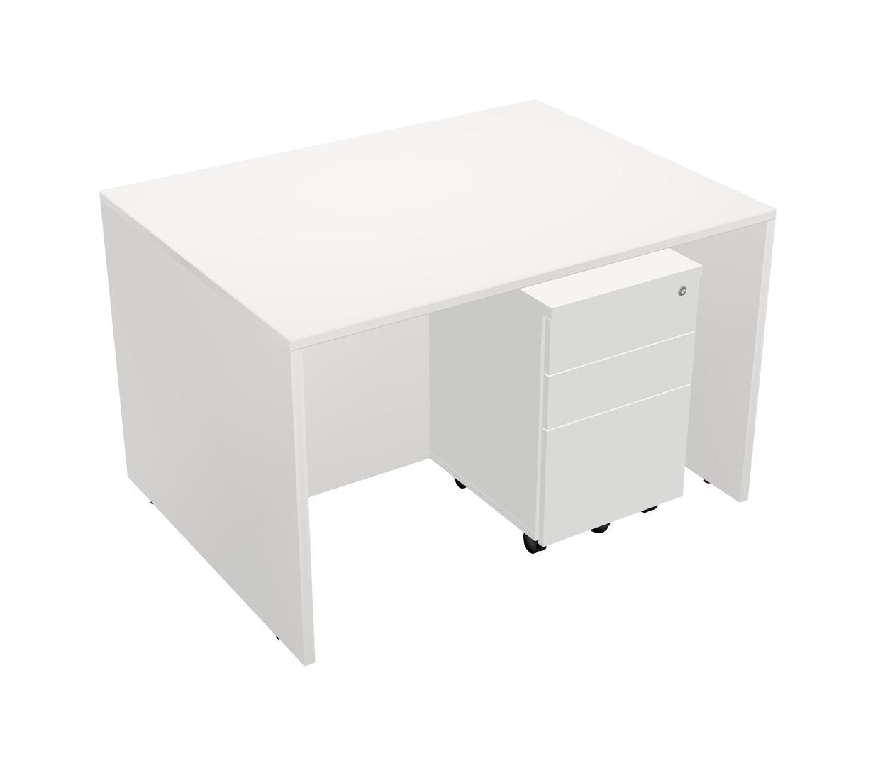 Bureau Rectangulaire Blanc Avec Tiroirs Mobiles En Bois Blanc