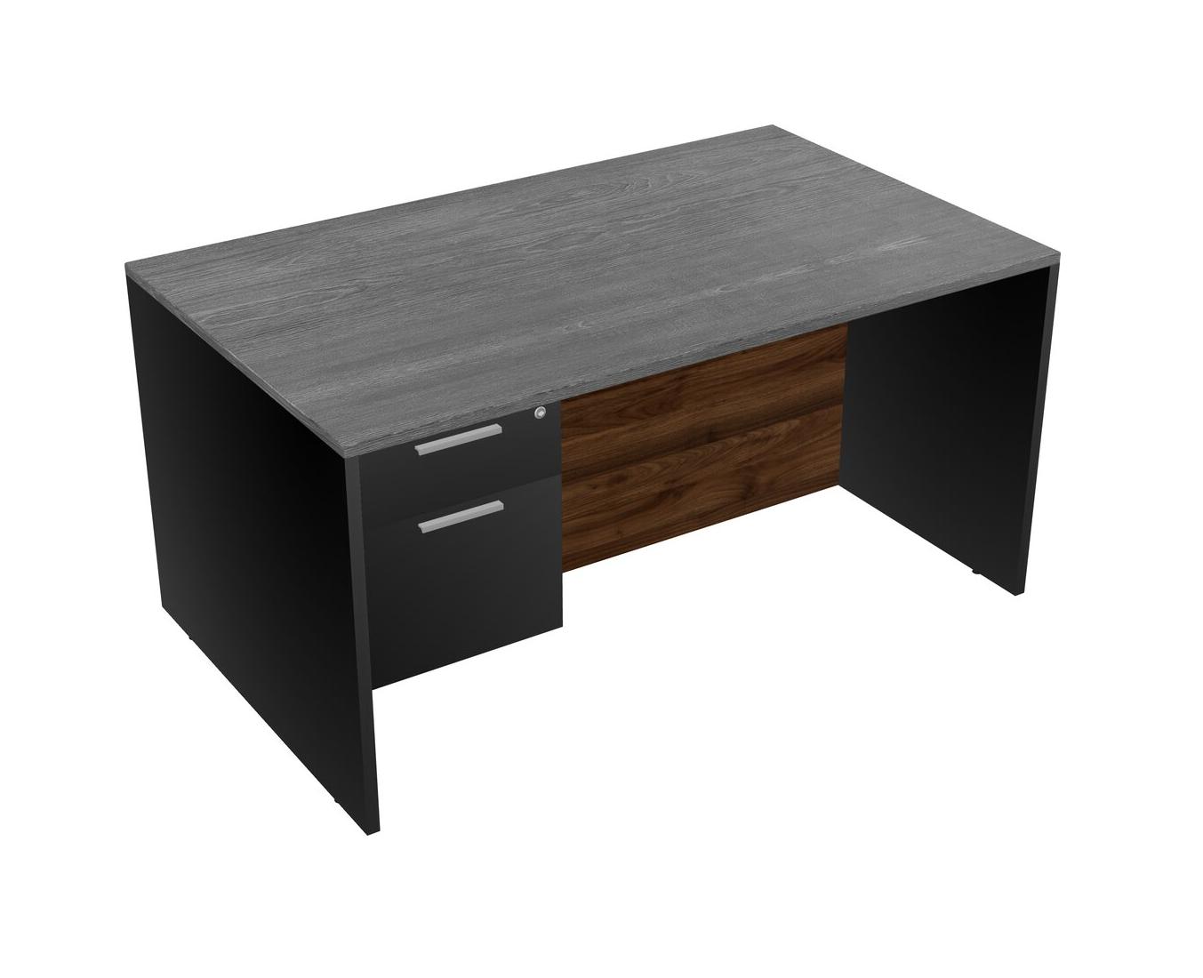 Bureau Rectangulaire Gris Avec Tiroirs Suspendus Noirs