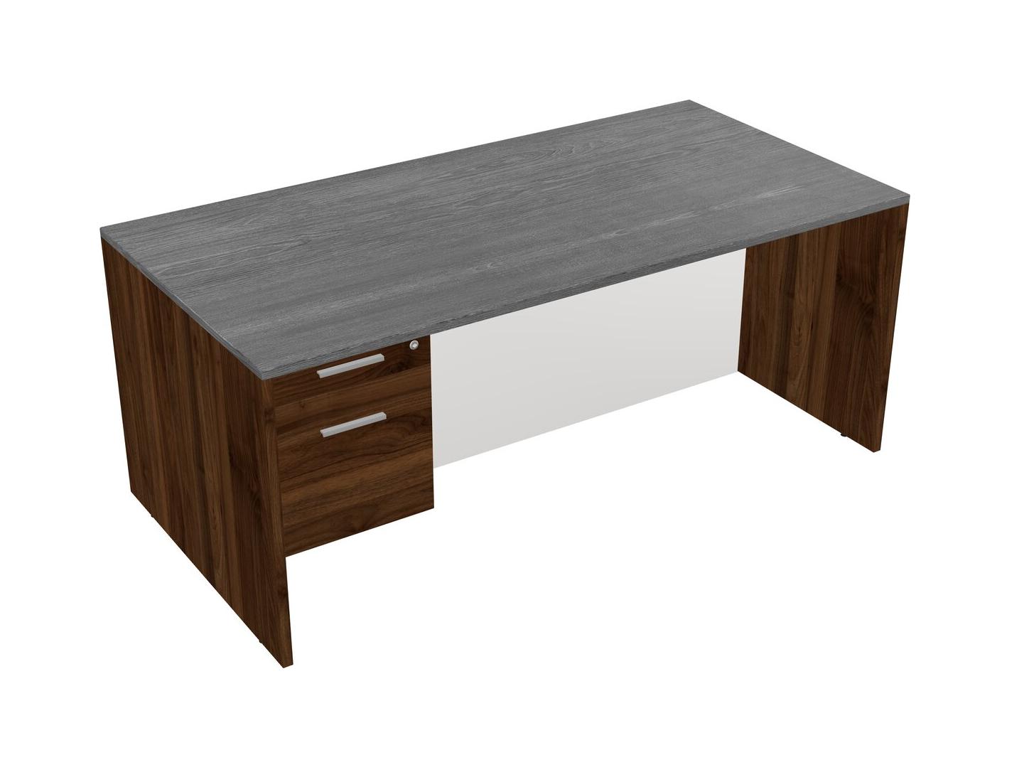 Bureau Rectangulaire Gris Avec Tiroirs Suspendus En Noyer Columbia