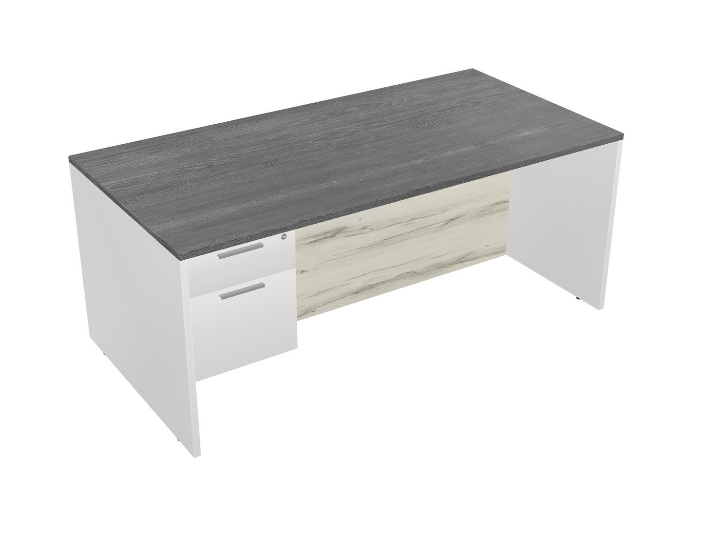 Grey Rectangular Office Desk Plus White Hanging Drawers