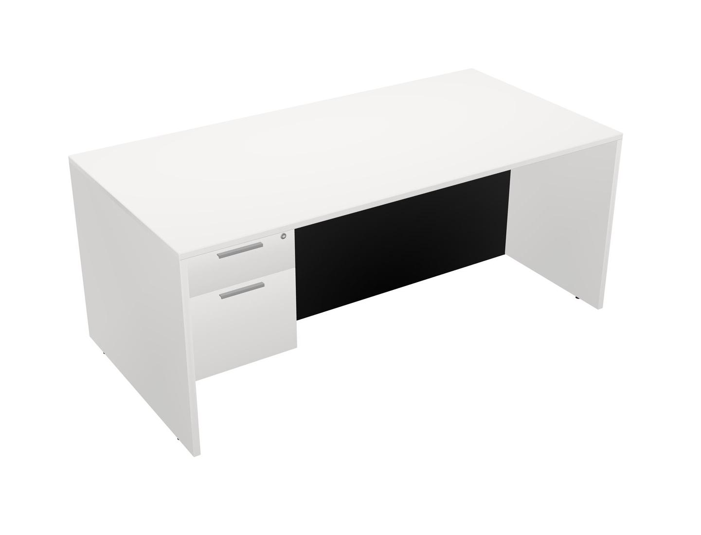 Bureau Rectangulaire Blanc Avec Tiroirs Suspendus Blancs