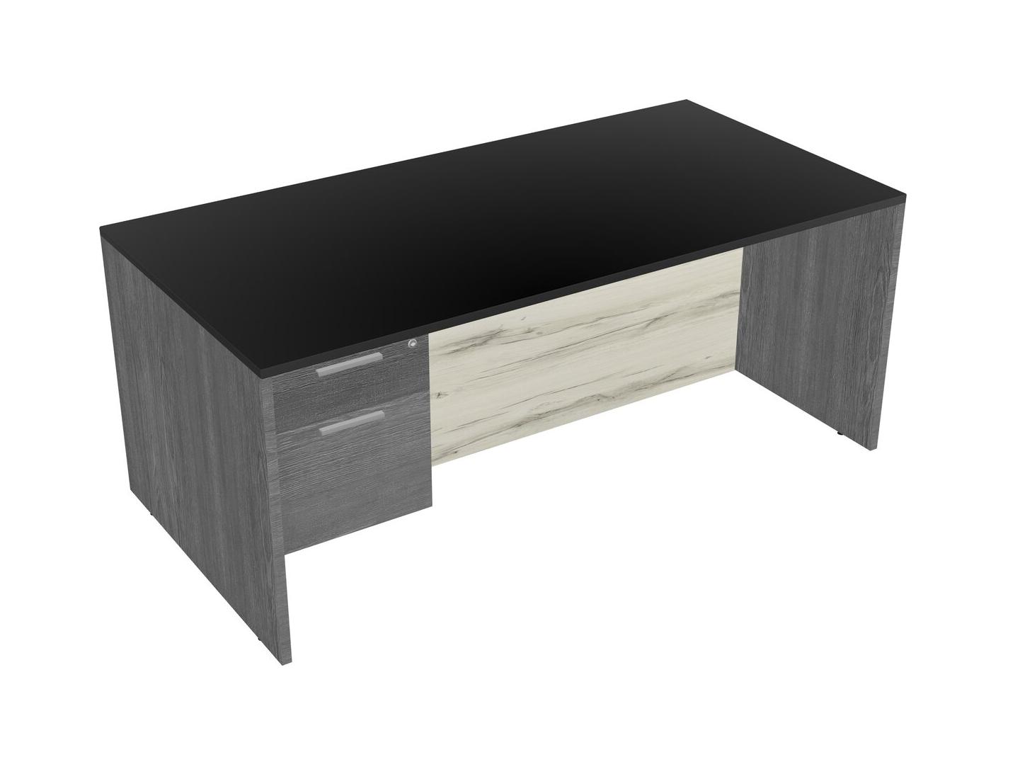 Bureau Rectangulaire Noir Avec Tiroirs Suspendus Gris