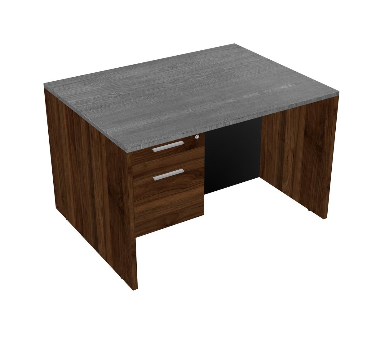 Bureau Rectangulaire Gris Avec Tiroirs Suspendus En Noyer Columbia
