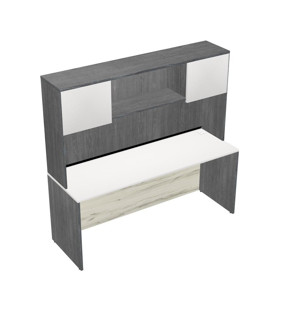 Bureau Rectangulaire Blanc Et Bahut Gris
