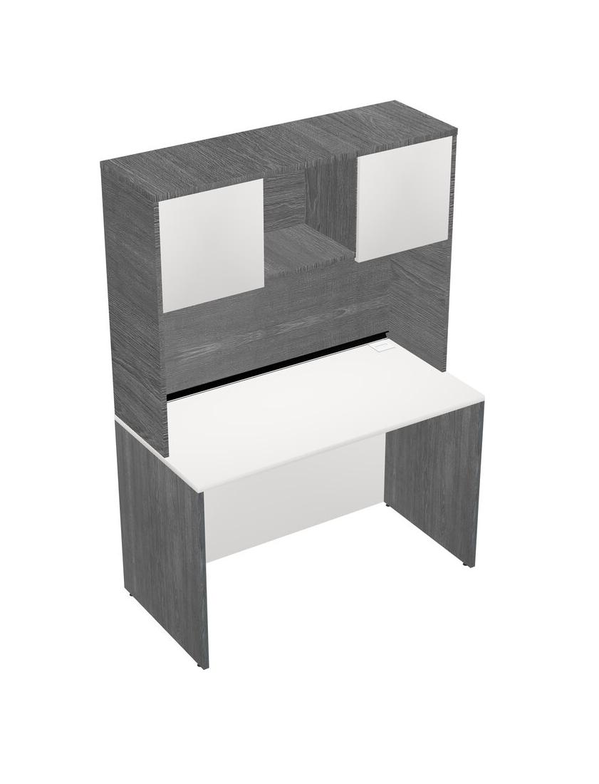 Bureau Rectangulaire Blanc Et Bahut Gris