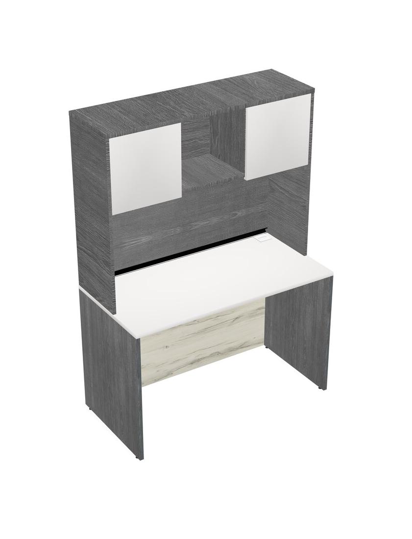 Bureau Rectangulaire Blanc Et Bahut Gris