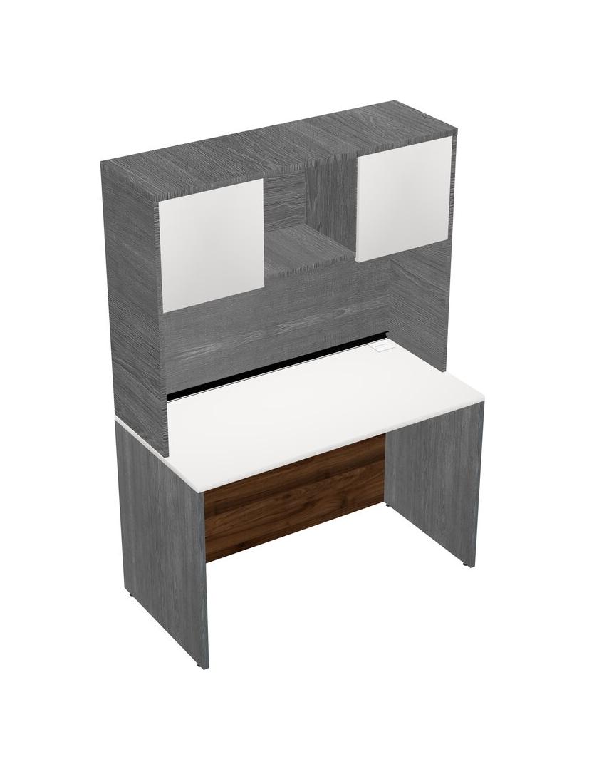 Bureau Rectangulaire Blanc Et Bahut Gris