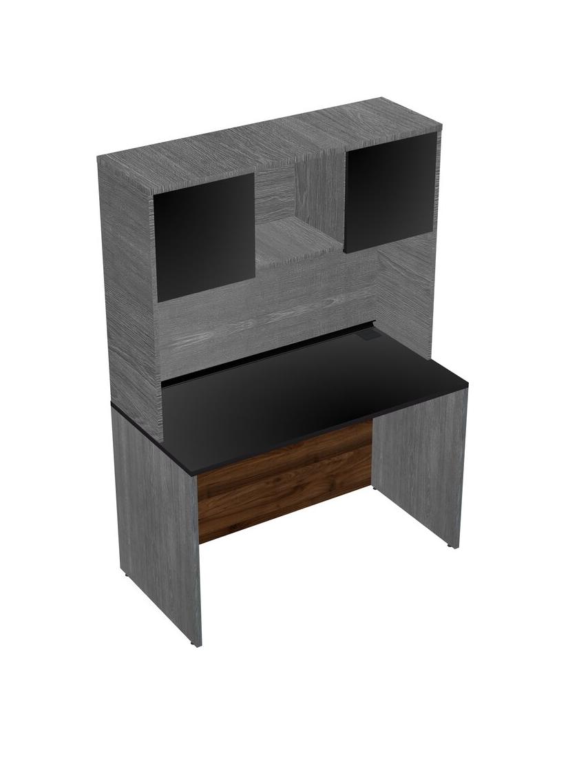 Black Rectangular Office Desk And Grey Hutch