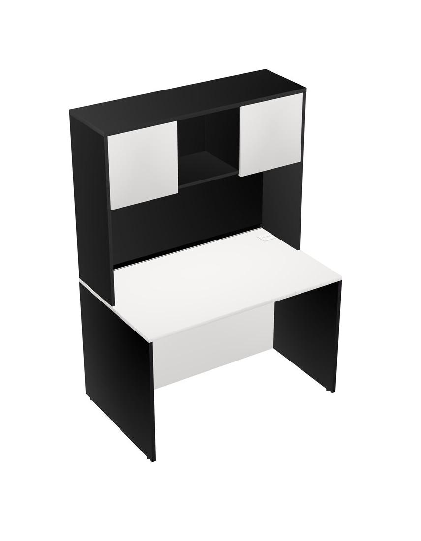 White Rectangular Office Desk And Black Hutch