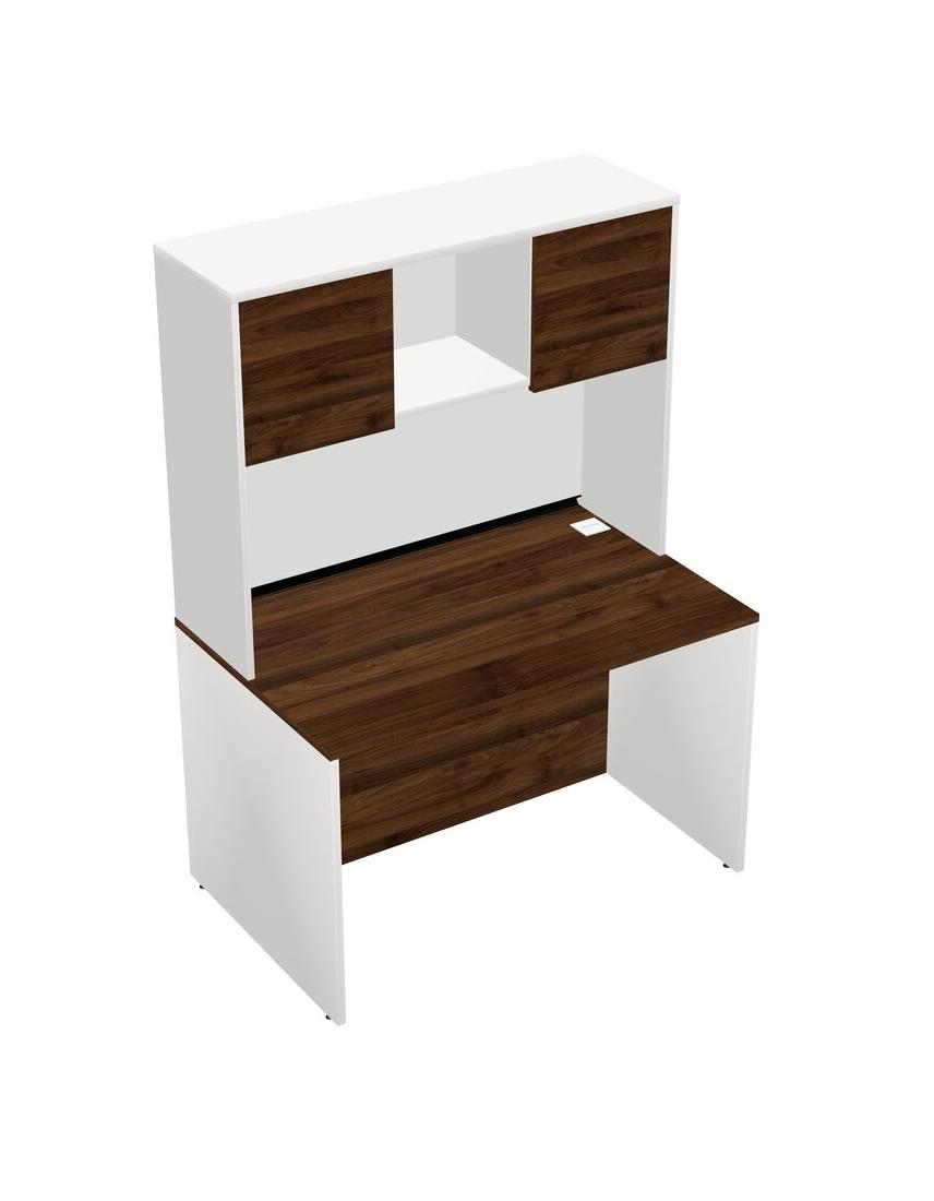 Columbia Walnut Rectangular Office Desk And White Hutch