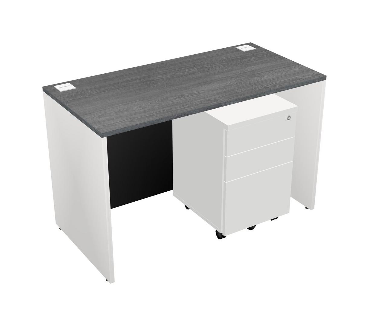 Bureau Rectangulaire Gris Avec Tiroirs Mobiles En Bois Blanc