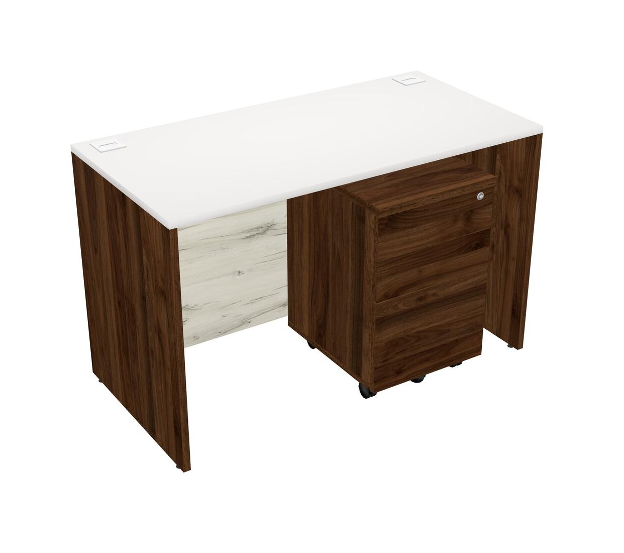 Bureau Rectangulaire Blanc Avec Tiroirs Mobiles En Bois De Noyer Columbia