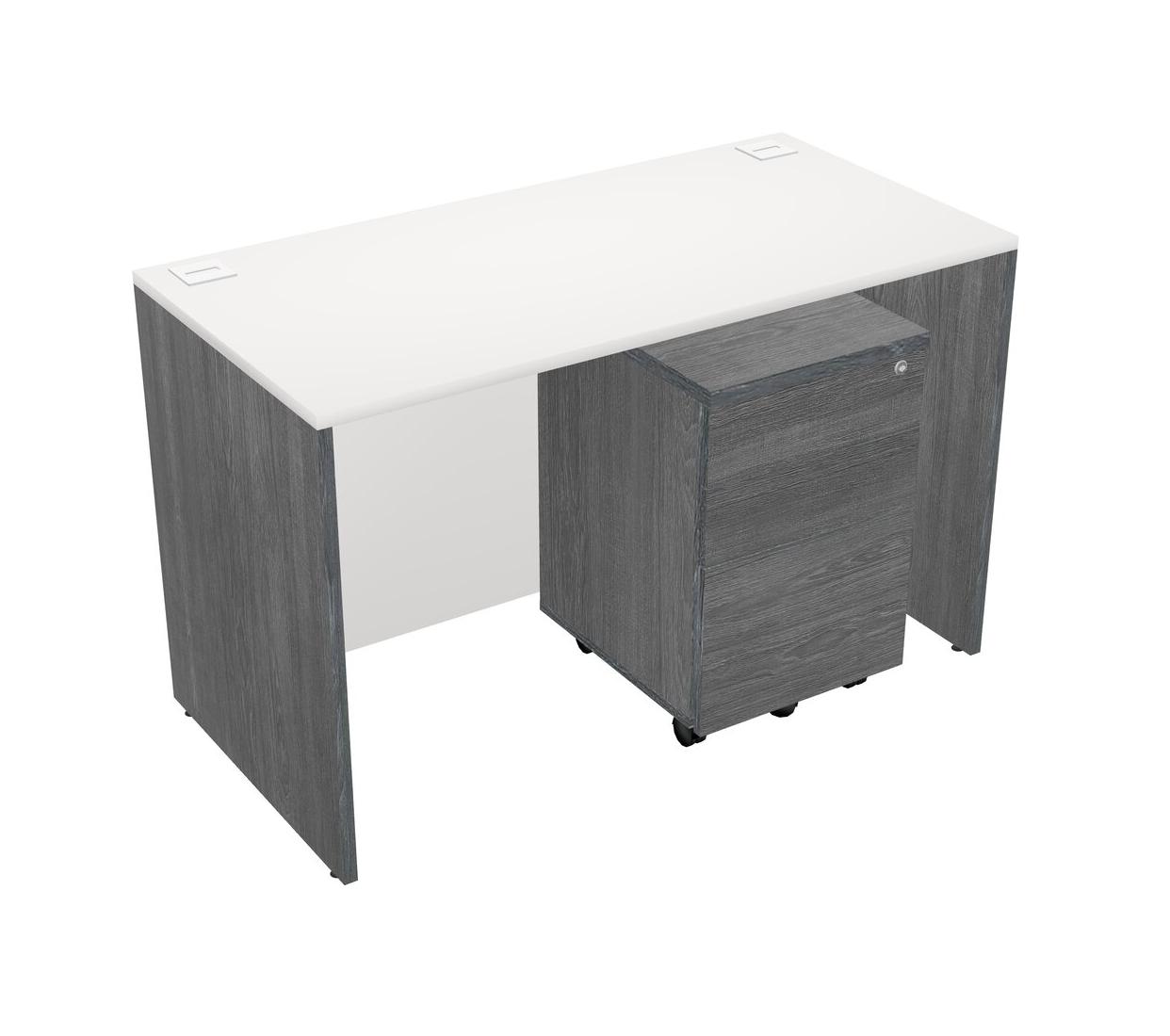 Bureau Rectangulaire Blanc Avec Tiroirs Mobiles En Bois Gris